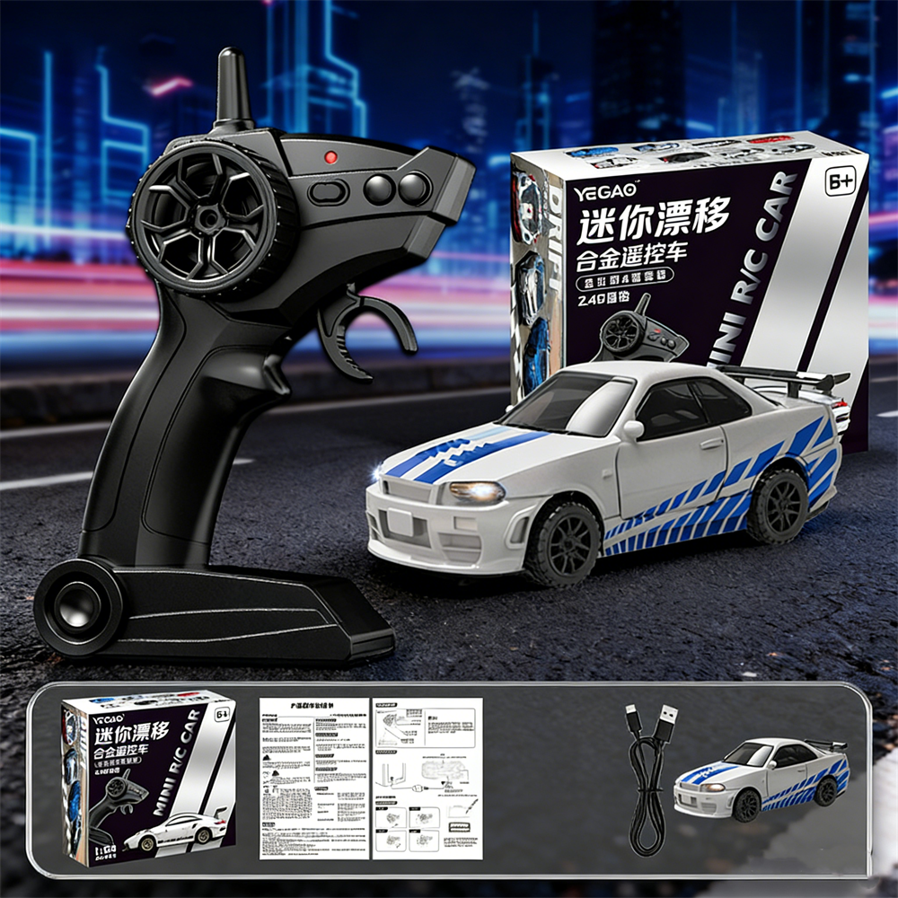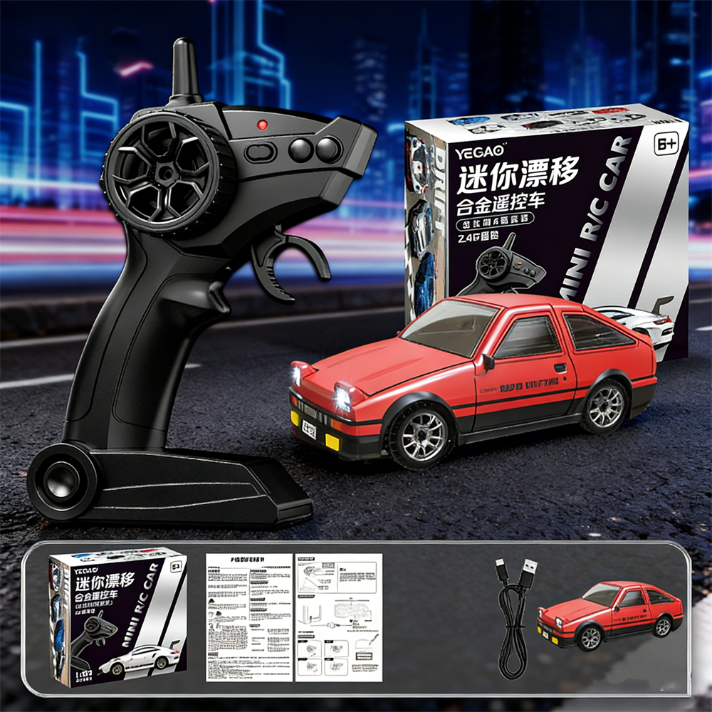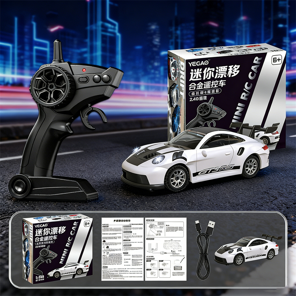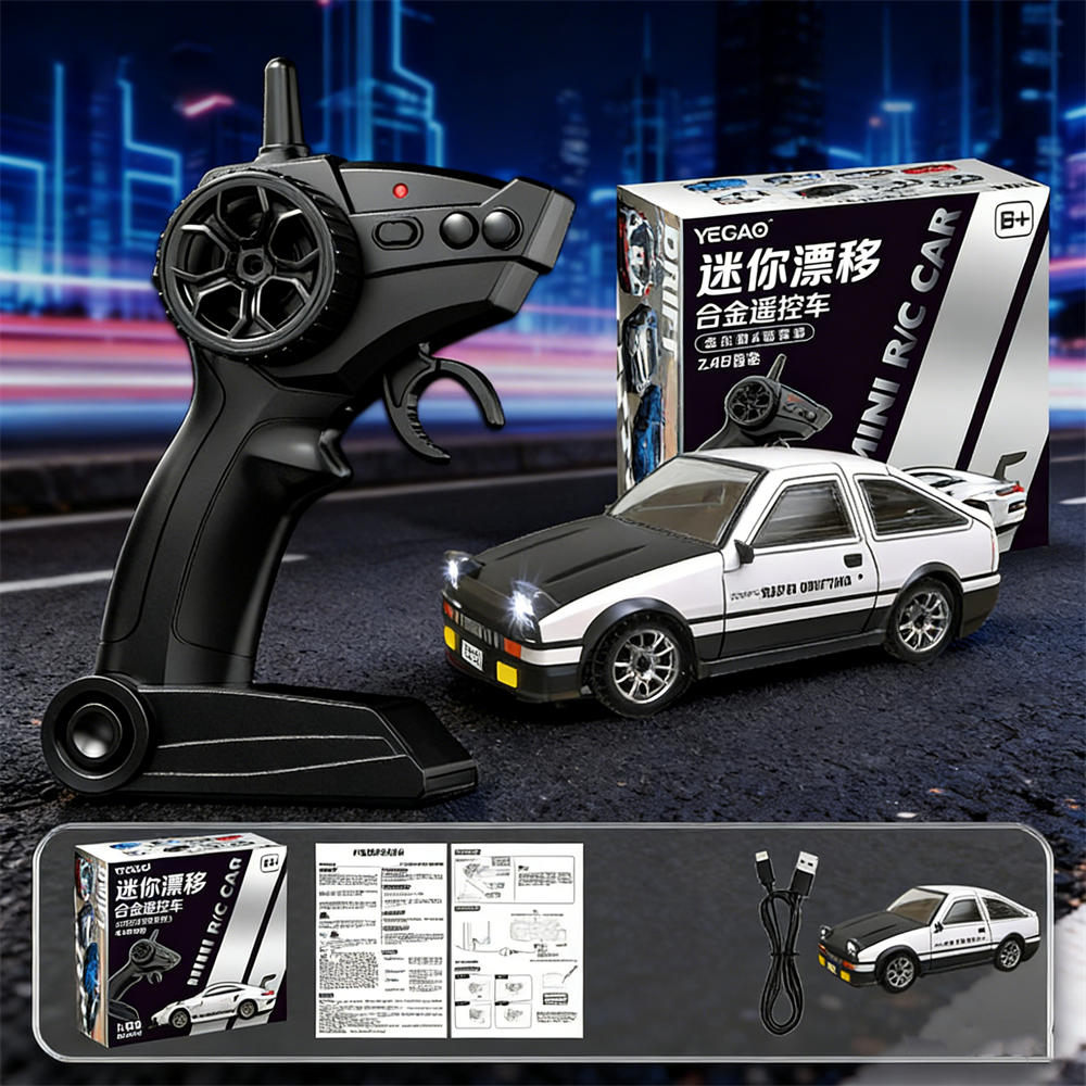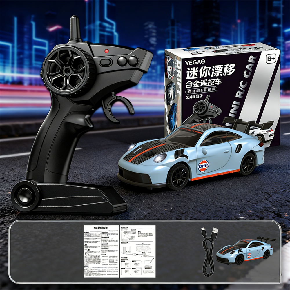 YEGAO D43-01Q RTR 1/64 2.4G 4WD Mini Drift RC Car Sports Alloy Body Shell LED Light High Speed On-Road Micro Racing Remote Control Vehicles Models Desktop Ornaments Toys