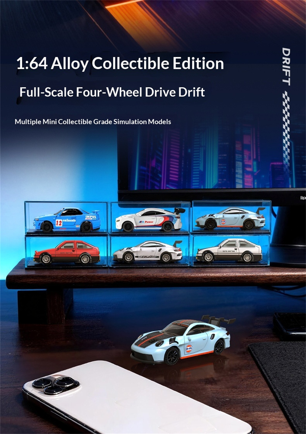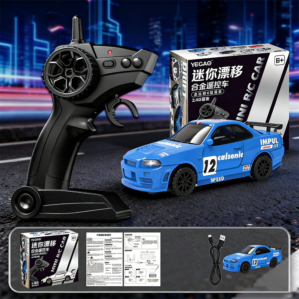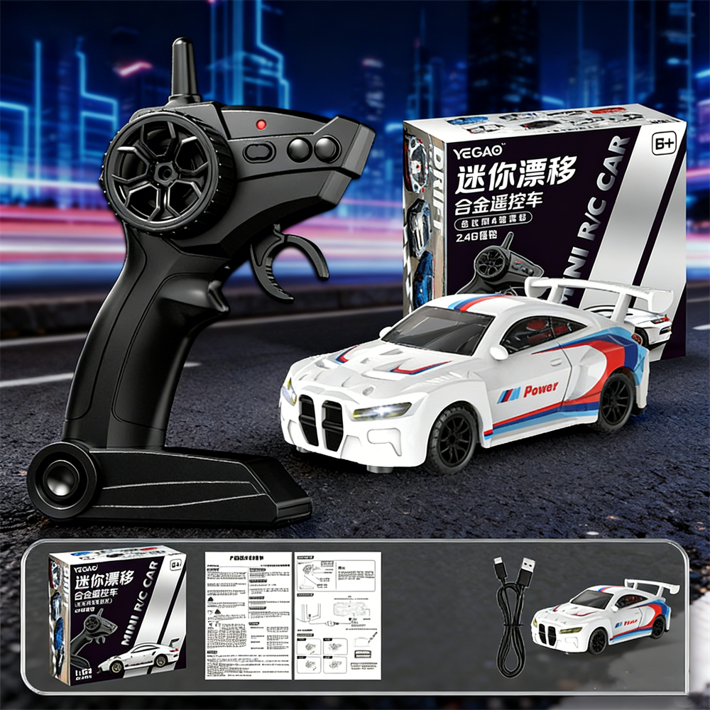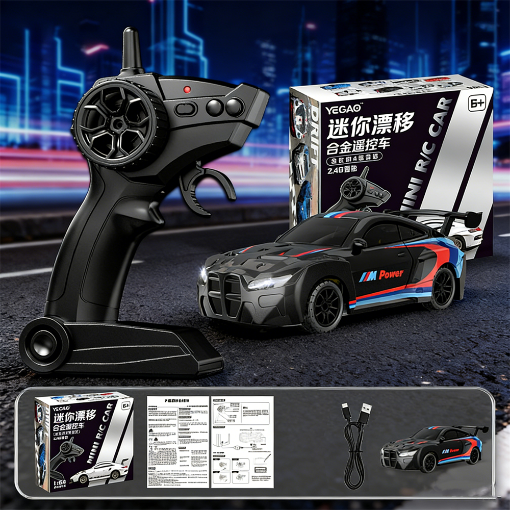 YEGAO D43-01Q RTR 1/64 2.4G 4WD Mini Drift RC Car Sports Alloy Body Shell LED Light High Speed On-Road Micro Racing Remote Control Vehicles Models Desktop Ornaments Toys