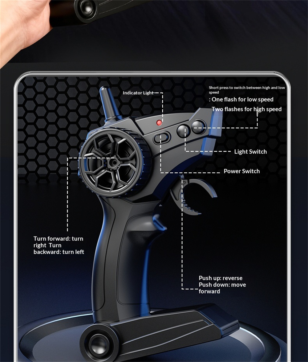 This RC car comes fully assembled and painted, ready for immediate use straight out of the box. No additional assembly is required, making it perfect for beginners.