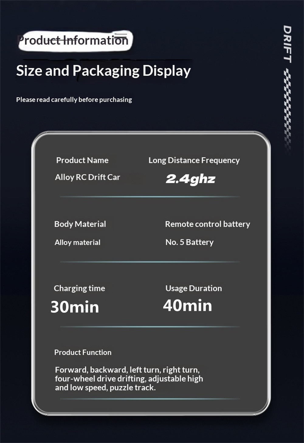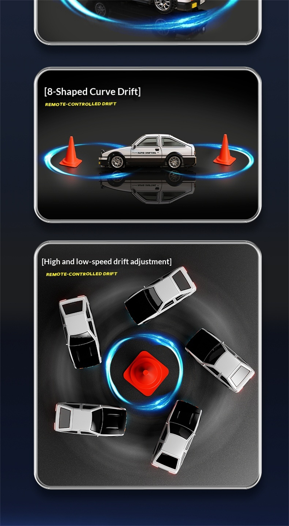 With dimensions of 3.14×1.37×0.98 inches, this RC car is portable and easy to carry, making it suitable for indoor and outdoor use.