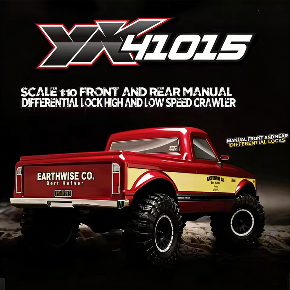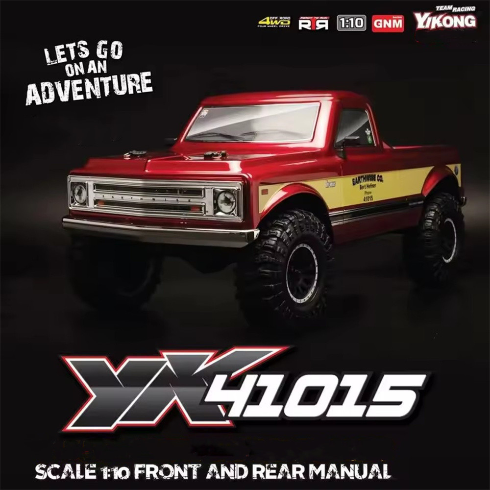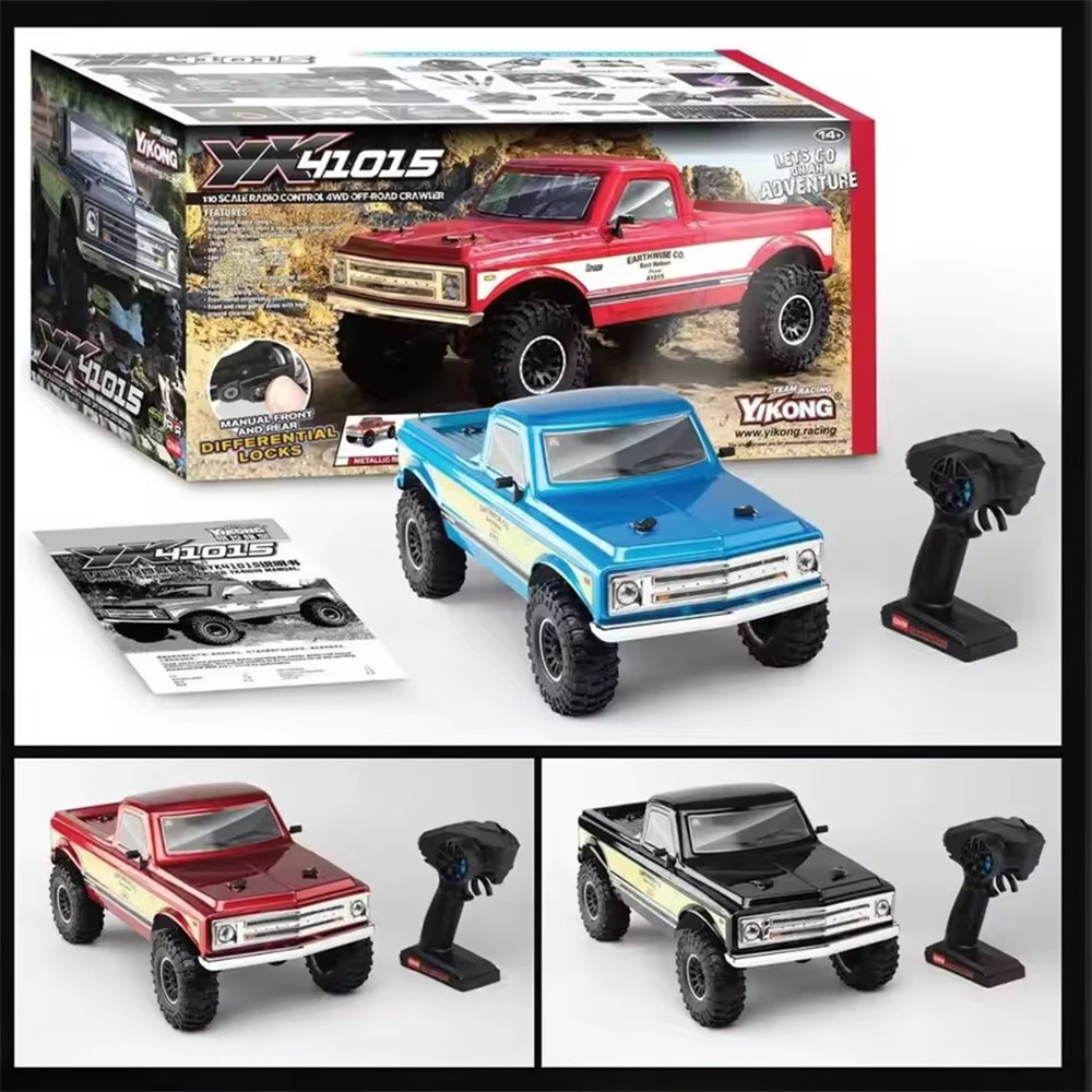 The Yikong YK41015 is a 1/10 scale 4WD crawler with a classic American off-road design. It features portal axles, a 2-speed transmission, manually lockable differentials, and a Hobbywing 60A ESC. With a low center of gravity and strong stability, it performs excellently on rocks, mud, and trails.