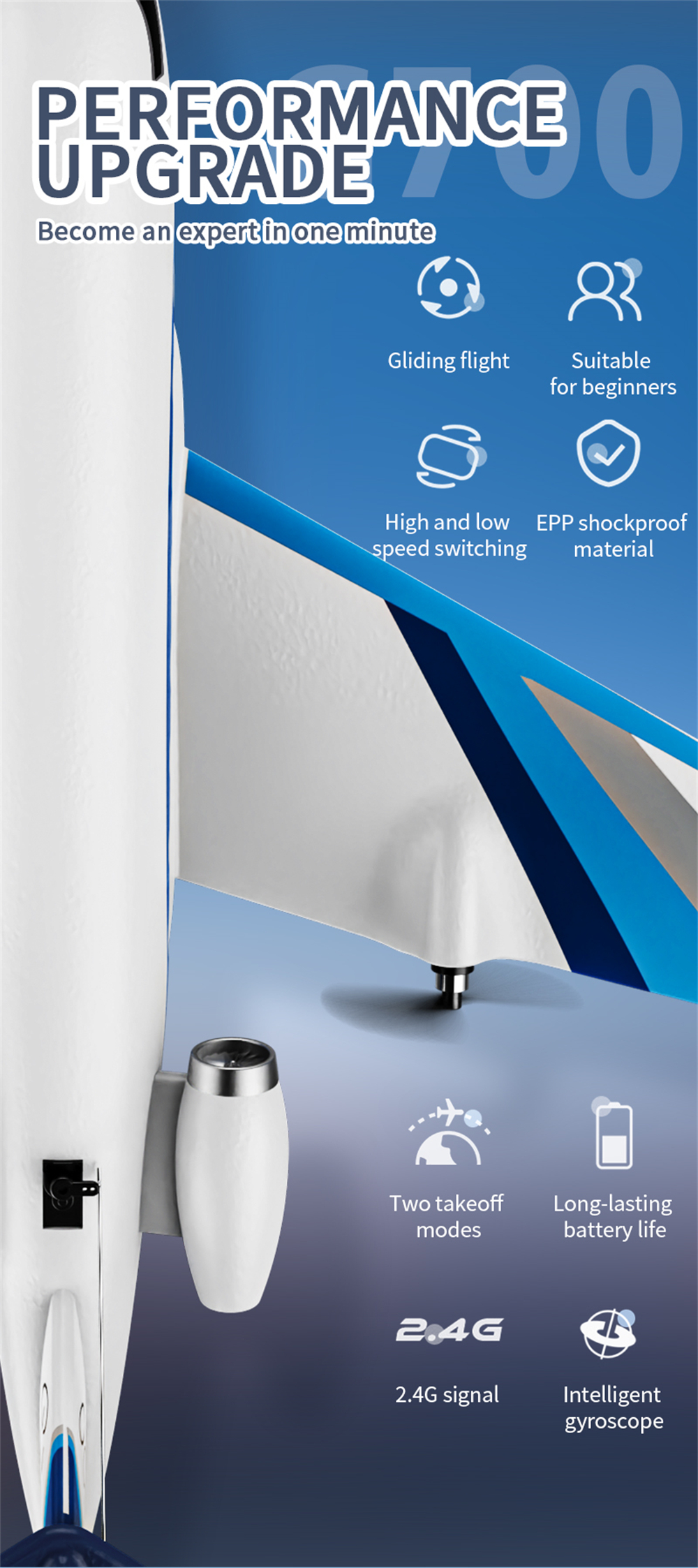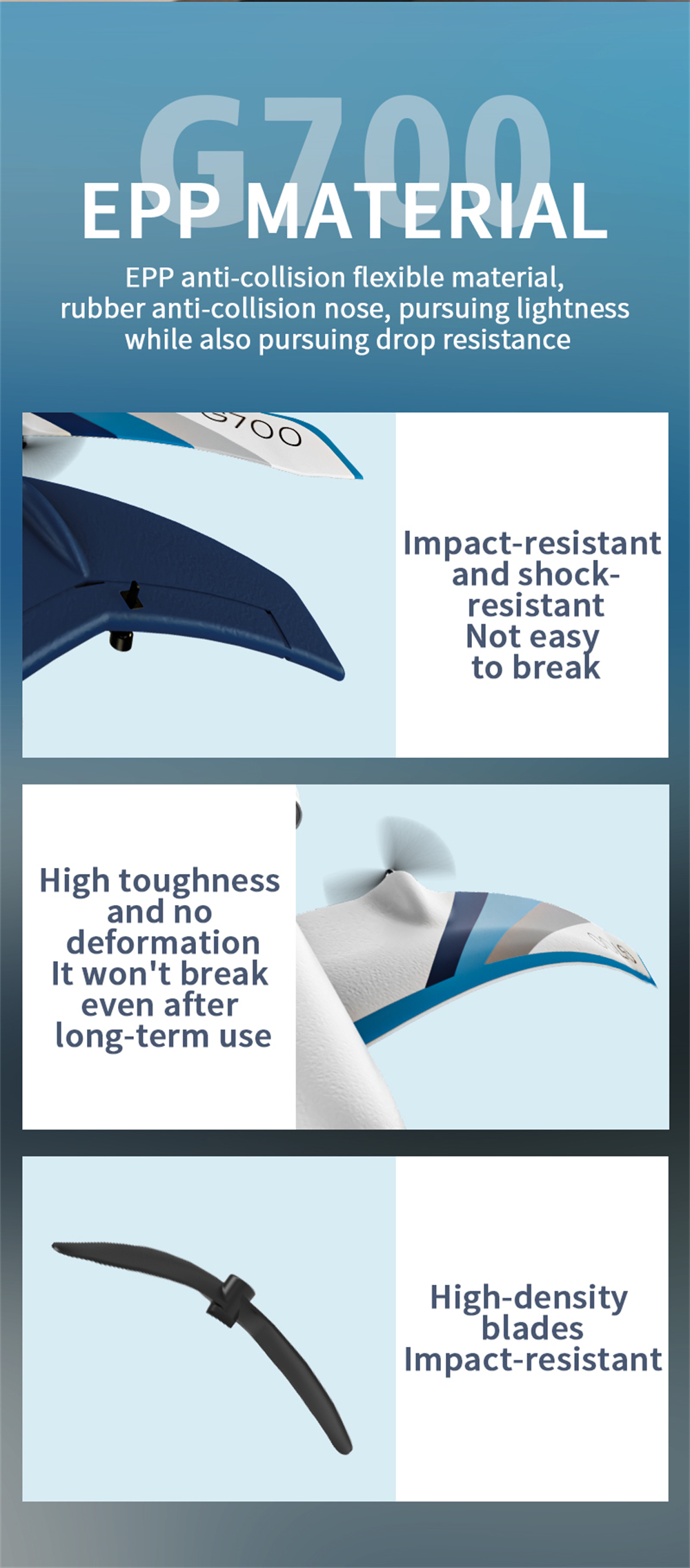 5. EPP foam fuselage, flexible and shock-resistant.