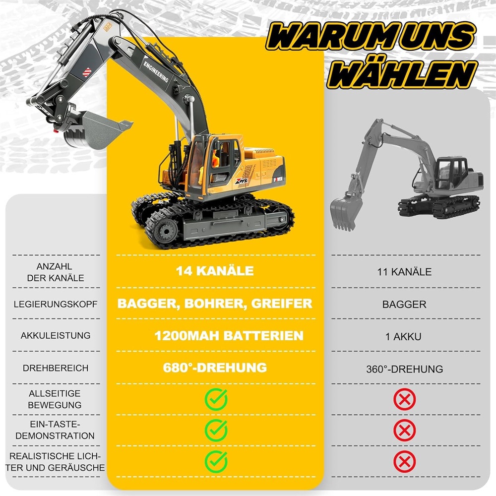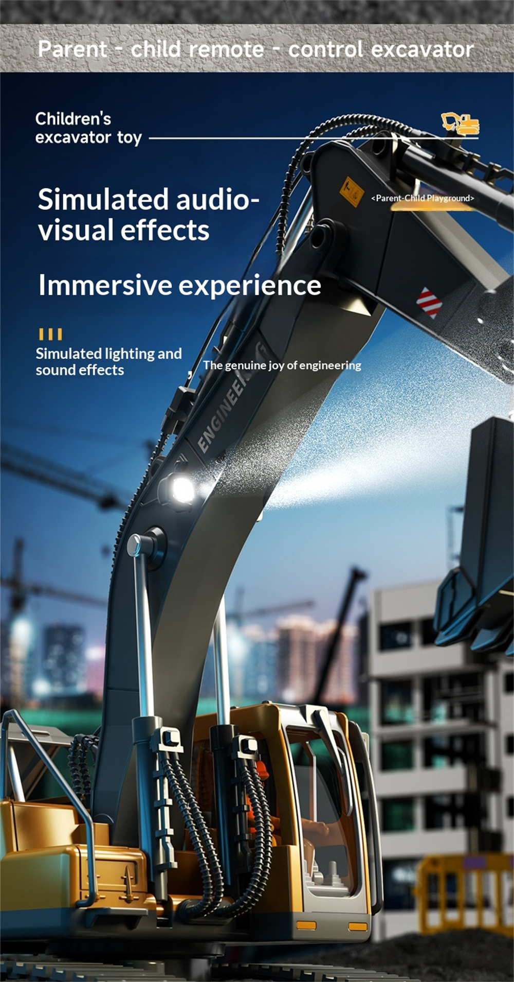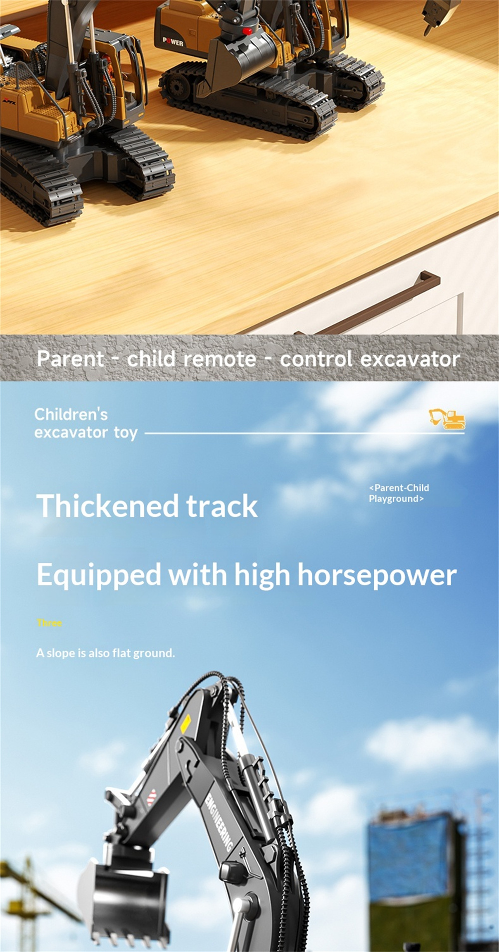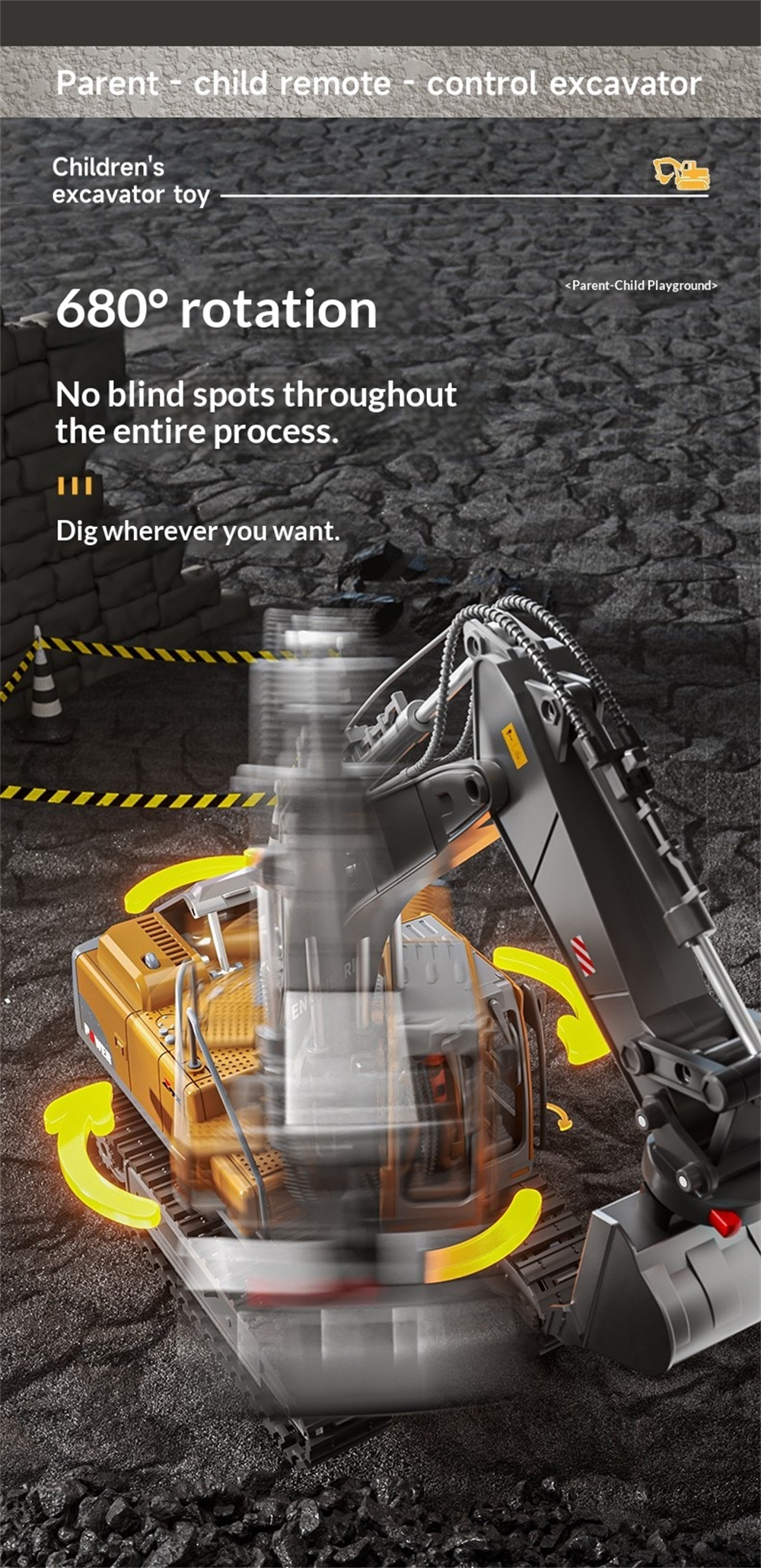 Battery | Battery for the Excavator:3.7V 1200mAh Li-ion battery(included) Battery Charging Time:About 1.5 hours Battery Playing Time:Approx. 15-20 minutes |
